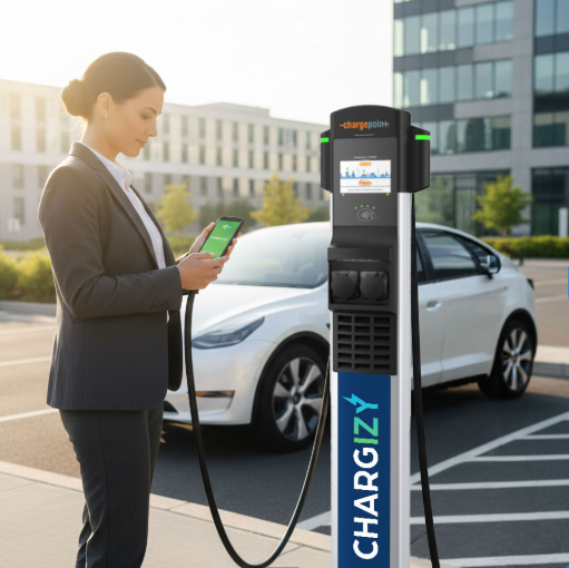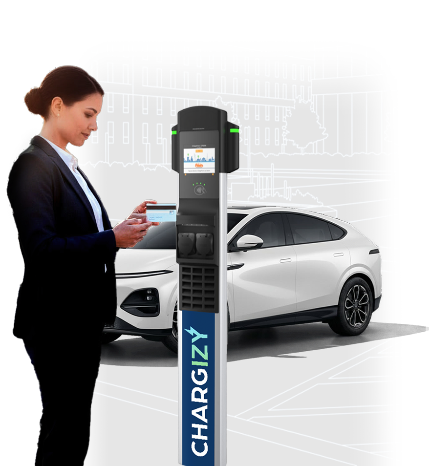 Chargizy finance, installe et exploite des micro-stations de recharge AC sur les parkings des tiers.